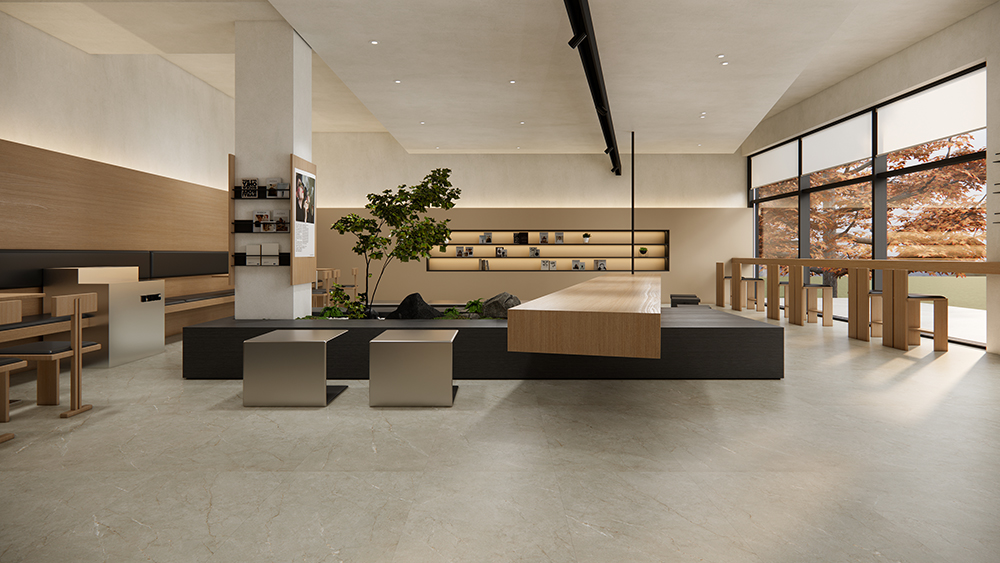 产品描述:细腻的纹理、透润的光感,极致还原天然大理石的原生美感。地面通铺,无限延续的石纹营造出一眼望不到边的大视野,把自然的壮阔景观搬进家中。